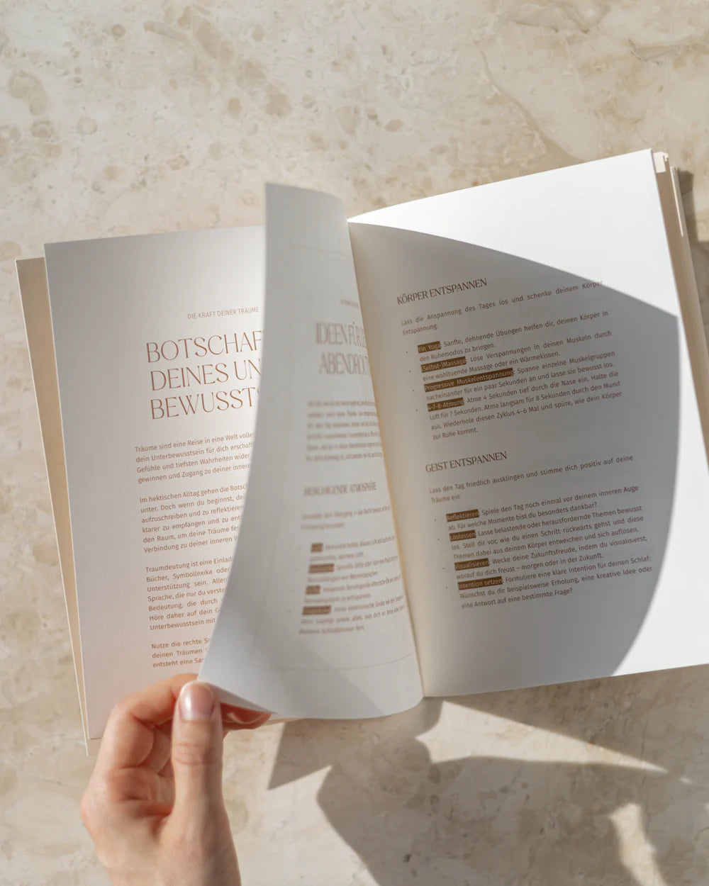 Entdecke mit dem DREAM Journal den Zauber deiner Träume! Dieses liebevoll gestaltete Journal begleitet dich dabei, deine nächtlichen Visionen bewusst wahrzunehmen, festzuhalten und intuitiv zu deuten. Mit geführten Seiten voller inspirierender Impulse unterstützt es dich dabei, deine innere Weisheit zu stärken und deine Abendroutine magisch zu gestalten. Plus Bonusbereich mit stimmungsvollen Playlists und coolen Smartphone-Hintergründen – so wird das Träumen zum bewussten Abenteuer!