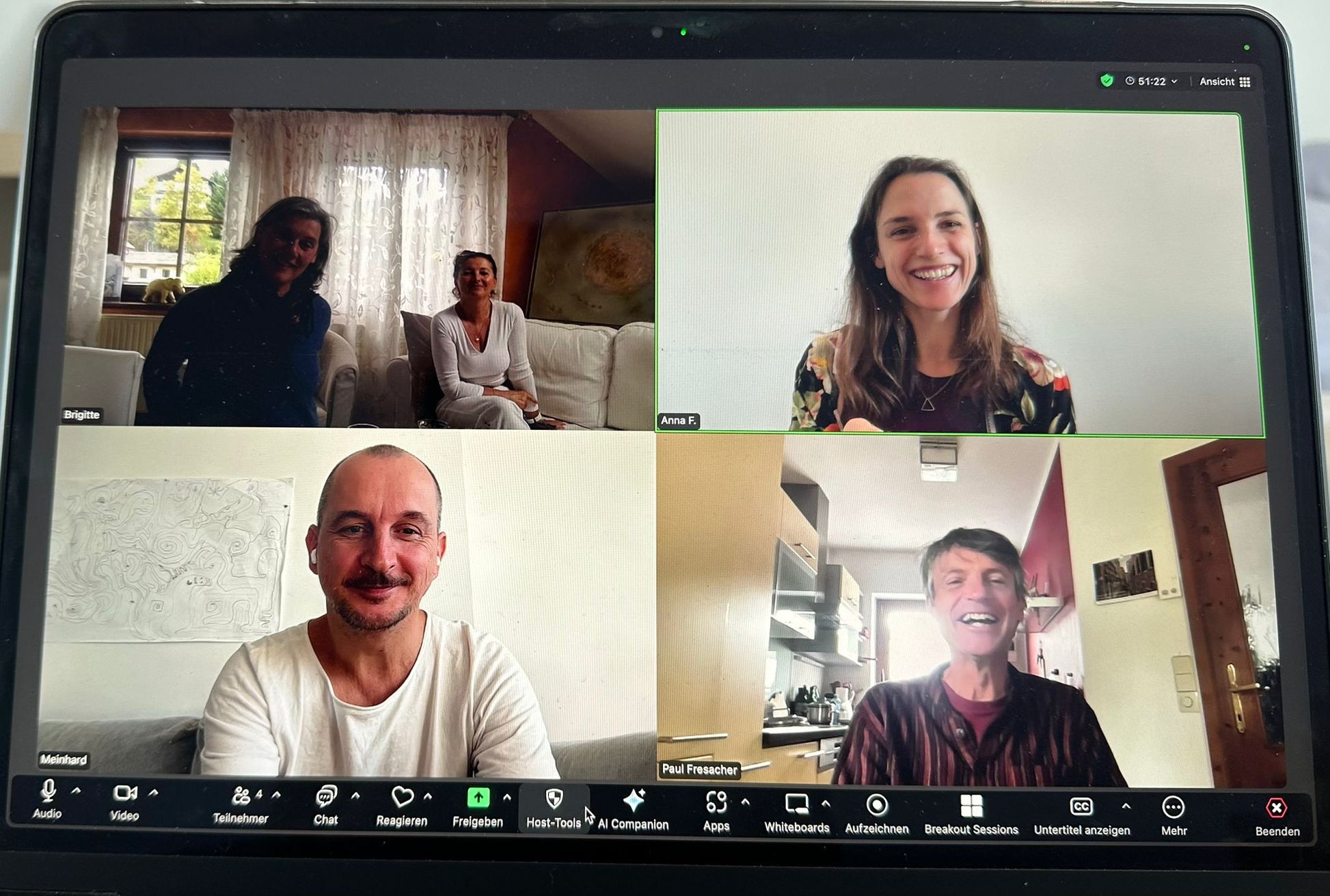 - Bitte logge dich pünktlich ein und richte dir einen ruhigen Ort ein, an dem du ungestört bist und gemütlich sitzen oder manchmal auch liegen kannst.